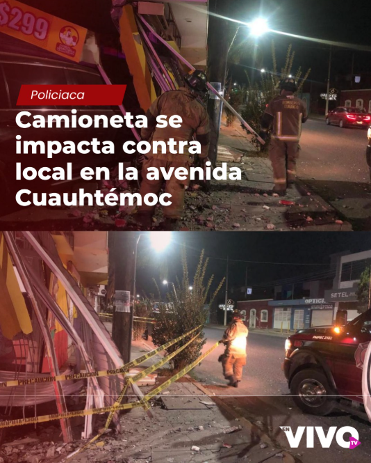 Durante la madrugada, elementos del Cuerpo de Bomberos de Durango atendieron un fuerte accidente vehicular registrado sobre la avenida Cuauht茅moc, a la altura de las calles Profesor Fernando Carrillo e Isauro Benzor, en la colonia Ci茅nega. Una camioneta Honda Pilot modelo reciente se proyect贸 contra un local de comida e ingres贸 parcialmente al interior del establecimiento.