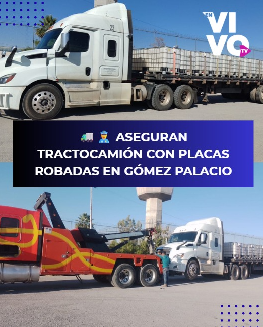 La Policía Estatal detuvo en Gómez Palacio a un conductor de tractocamión que circulaba con placas sobrepuestas con reporte de robo. El aseguramiento ocurrió en el filtro de vigilancia ubicado sobre la carretera Jiménez–Gómez Palacio, a la altura de la localidad Manila.