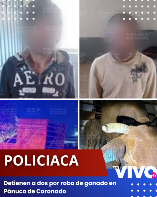 [12:34 PM, 11/7/2025] Sofi: La Policía Estatal detuvo a dos presuntos ladrones de ganado en la localidad 28 de Mayo, en Pánuco de Coronado, Durango.